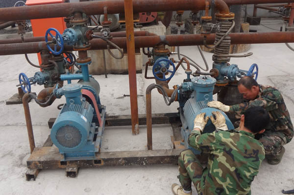 2012年6月4日我公司售后服務人員赴遼寧省某公司進行RCB保溫齒輪泵進行安裝調試工作,該客戶使用我公司RCB保溫齒輪泵大概有5年的時間,對我公司生產(chǎn)的RCB保溫齒輪泵的質量及性能十分滿意,對我公司的售后人員的技術給予了贊賞.遠東泵業(yè)
