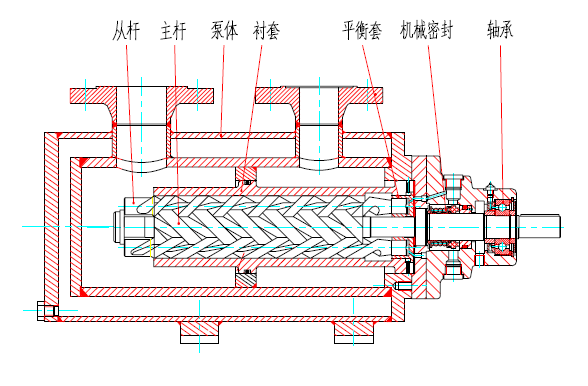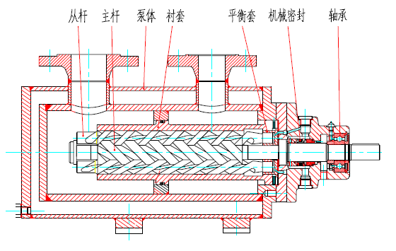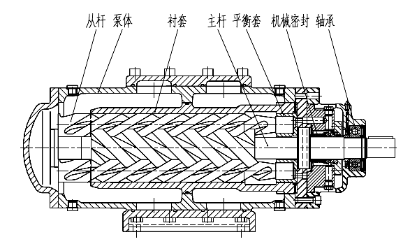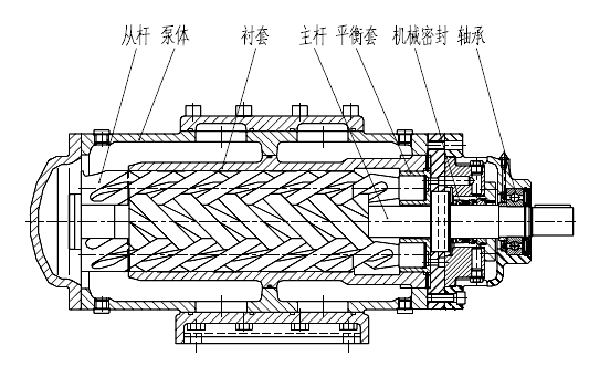 1.泵體 2.襯套 8.平衡套 12.主桿 13從桿 34 軸承 83 機(jī)械密封