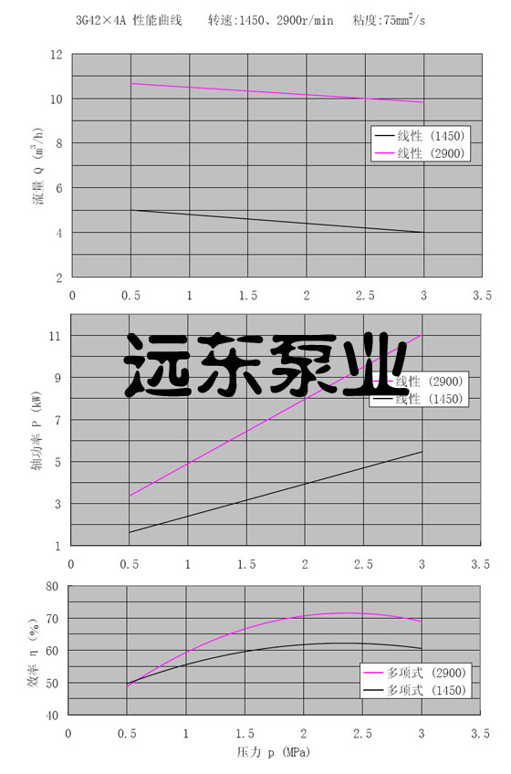 3gr42*4A三螺桿泵轉(zhuǎn)速1450,2900r/min粘度75cst下性能曲線圖