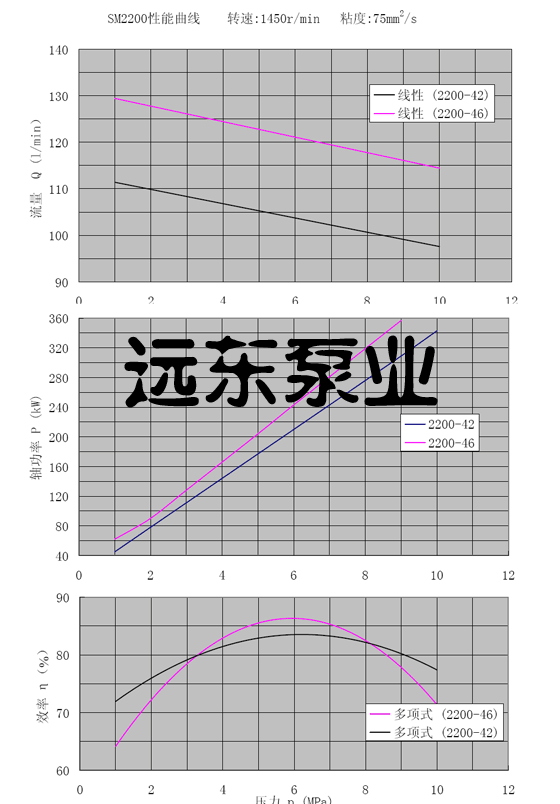 SM2200三螺桿泵轉(zhuǎn)速1450r/min,粘度75cst性能曲線圖