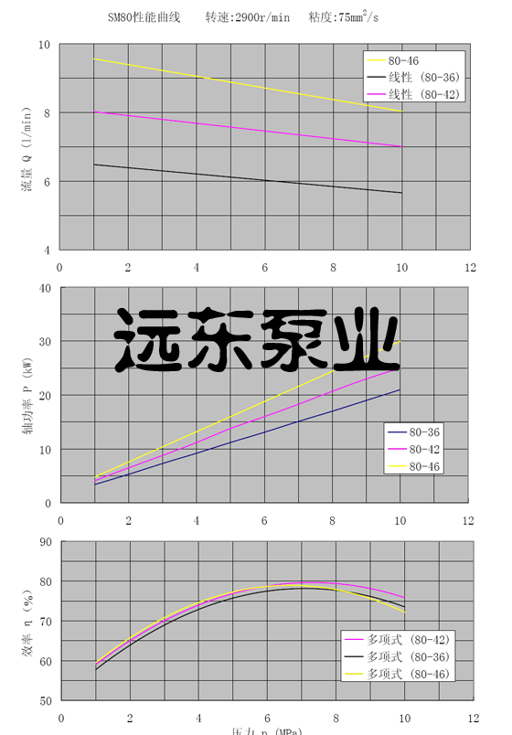 SM80三螺桿泵轉(zhuǎn)速2900r/min粘度:75cst性能曲線圖